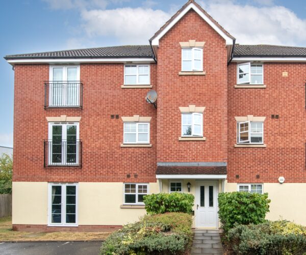 This CHAIN FREE GROUND FLOOR two bedroom apartment occupies a pleasant position on the popular Breme Park development well placed within walking distance of Bromsgrove railway station, canal walks & the eclectic mix of shops, café’s & eateries which can be found within Aston Fields village. Having a security intercom door entry system the apartment has been REDECORATED is electrically heated, double glazed & has NEW CARPETS throughout ; Reception hall with useful built in large cupboard, good size living room with double opening French doors leading outside, fitted kitchen complete with built in hob, extractor & oven, free standing washing machine together with space & power point suitable for a fridge freezer, TWO DOUBLE BEDROOMS, bathroom with shower above bath. There is a numbered