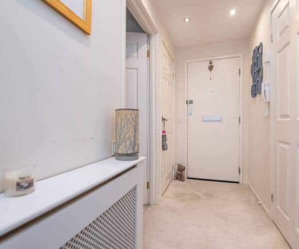 two bedrooms (the master with two double built-in wardrobes), bedroom two has a very useful built in storage cupboard, re-fitted shower room, with large walk-in shower. Well-tended communal gardens surround the property & as previously mentioned there is private residents’ car parking.