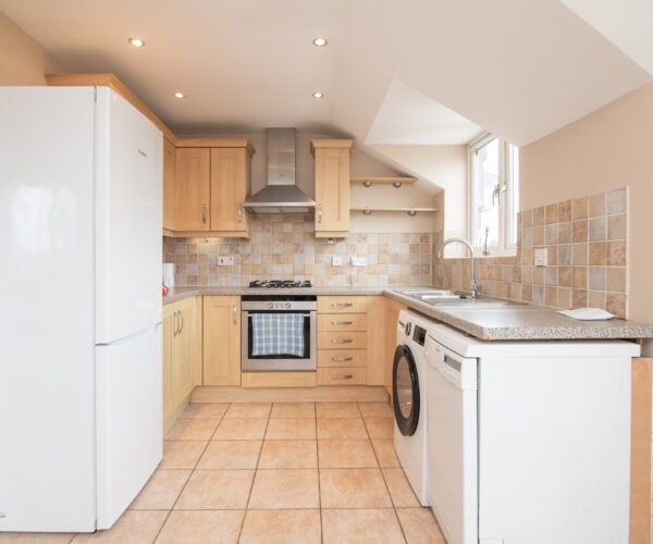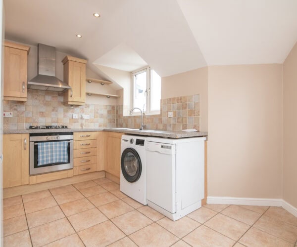 area having a tiled floor together with oven, hob & extractor, free standing fridge freezer, washing machine & dishwasher, 2 DOUBLE BEDROOMS both of which have built in double wardrobes, smart fully tiled bathroom with full suite together with a separate shower cubicle. Outside are well tended communal gardens together with private parking with numbered car parking space & visitors parking.